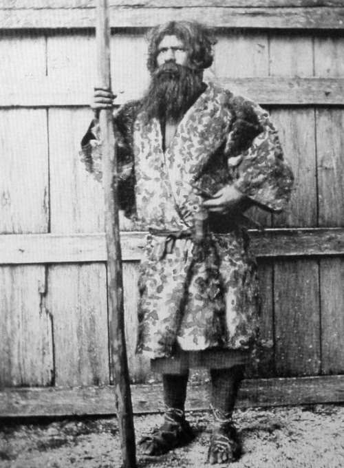 Speakers of a distinctly non-Japonic language, one perhaps on a continuum with the Jomon or Emishi languages, the Ainu also appear vastly different from their southern neighbors – indeed, early western visitors to Ezo perceived them as a sort of lost Caucasian people. Americans tended to liken them in appearance and custom to Native Americans. Their men wore huge, burly beards. Their women tattooed the area around their mouths in a distinctive black ink.