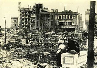 On March 10th, 1945, the Tokyo Great Air Raid resulted in the death of over 100,000 people across Tokyo in a single bombing raid. In Shinjuku, most children had been evacuated to the countryside; nonetheless, countless people were killed. [5] When those who had evacuated or fled finally made their way back to wartorn Tokyo, the district was an unrecognizable expanse of debris and gutted-out buildings.