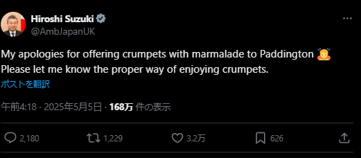 There’s no question that Hiroshi Suzuki is passionate about his job as Japan’s ambassador to the United Kingdom. His latest social media post, however, had Brits teasing him for how he chose to enjoy one of the nation’s favorite toasty treats.