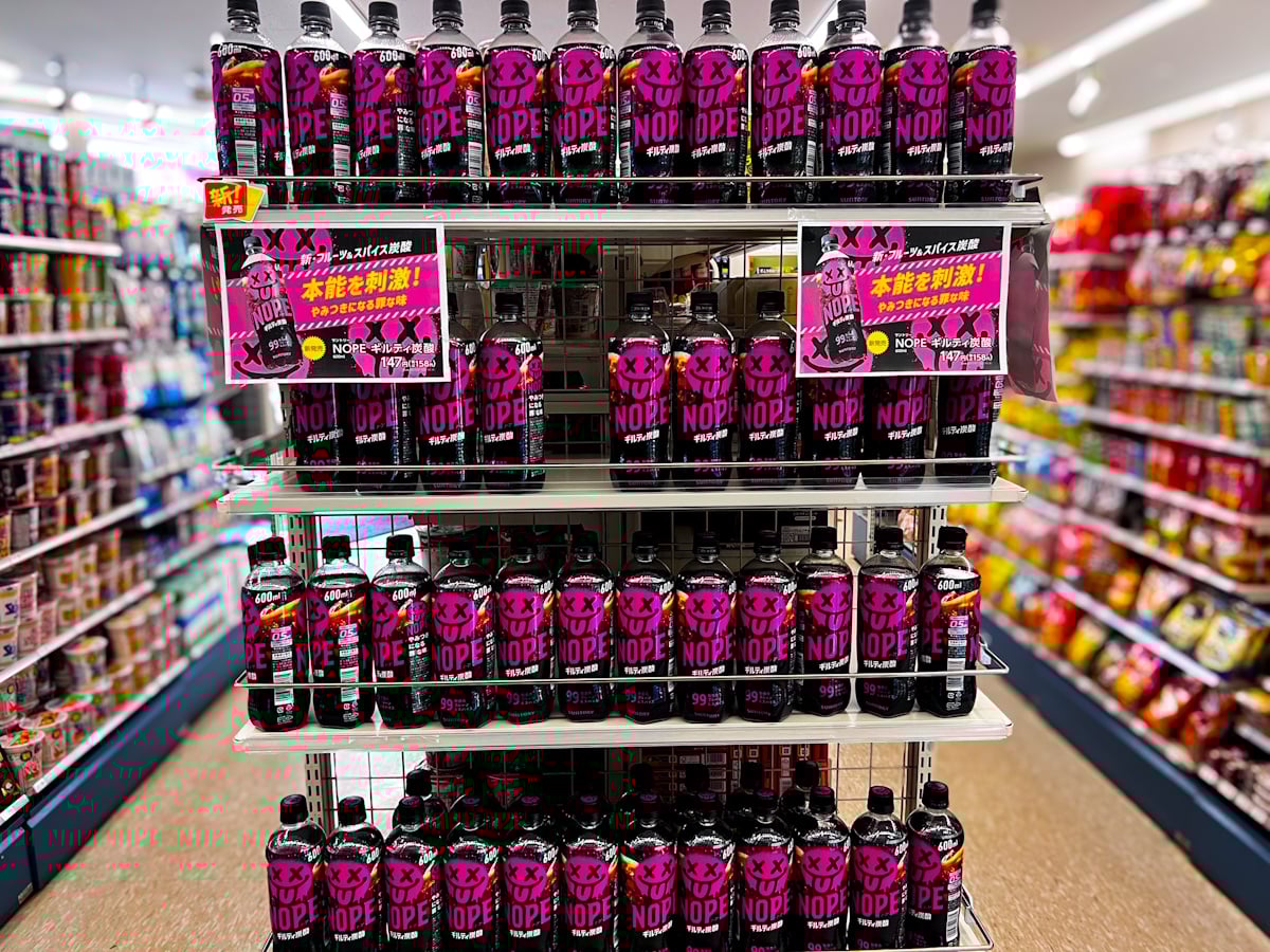 A new experimental beverage has recently hit store shelves in Japan. NOPE is a new soda from the food giant Suntory, whose best-known beverage to date is Boss Coffee. And it has a huge marketing campaign to accompany it.